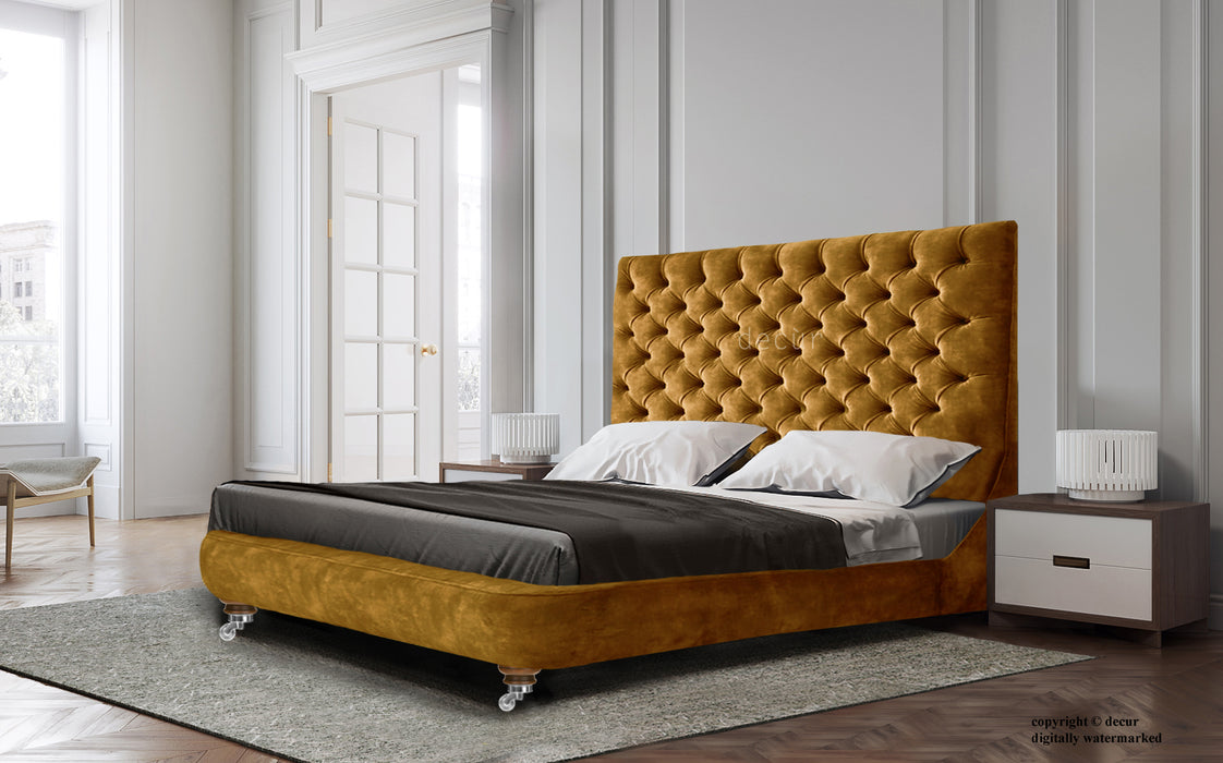 Eva Buttoned Velvet Upholstered Bed - Gold